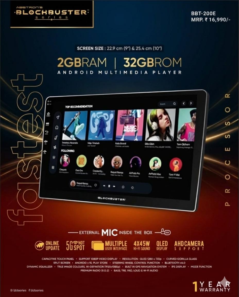 9 Inch display, RAM-2GB, ROM- 32